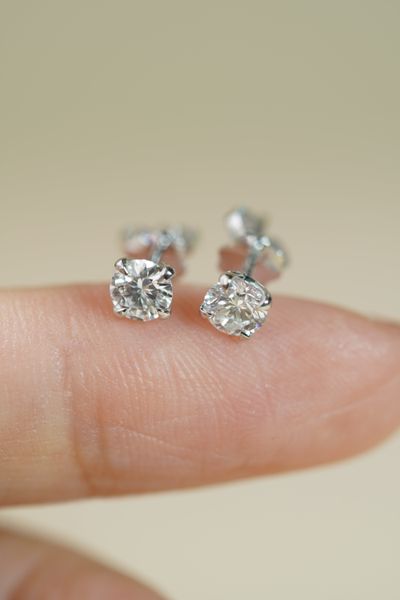 Đôi hoa tai vàng 14k kim cương nuôi cấy 4li5