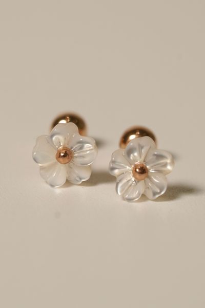 Hoa tai vàng 14K bông hoa cúc đuôi vàng hồng