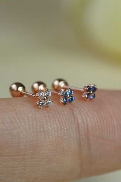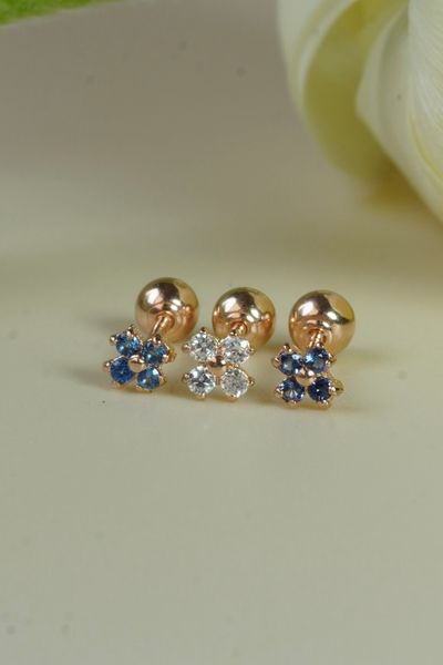 Khuyên tai vàng 14k hoa nhỏ màu trắng