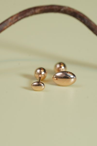 Hoa tai vàng 14K hình hạt đậu lớn