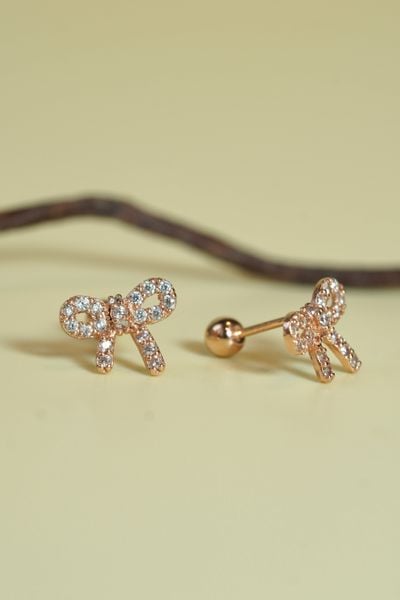 Khuyên tai vành vàng 14k nơ đính đá