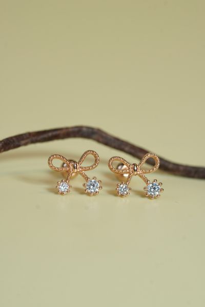 Hoa tai vàng 14k nơ đính đá