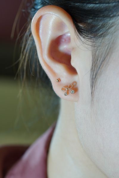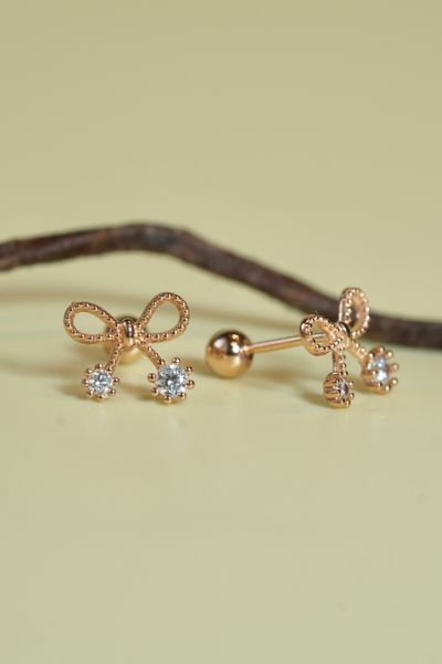 Khuyên tai vành vàng 14k nơ đính đá