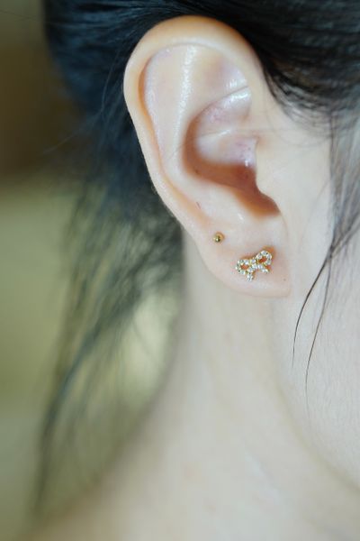 Khuyên tai vành vàng 14k nơ đính đá