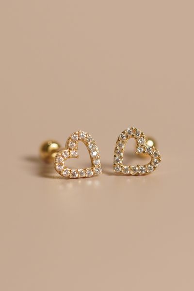 Hoa tai vàng 14k trái tim đính đá