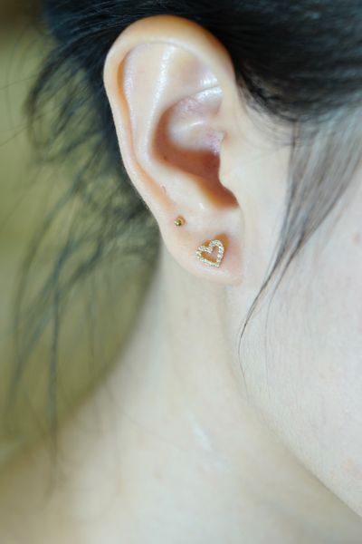 Khuyên tai vành vàng 14k trái tim đính đá