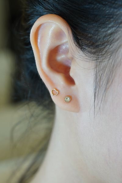 Hoa tai vàng 14K trái tim viền trơn